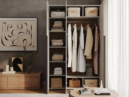 Двухстворчатая секция: Оснащена верхней полкой (антресольной) и продольной штангой для хранения одежды на вешалках.