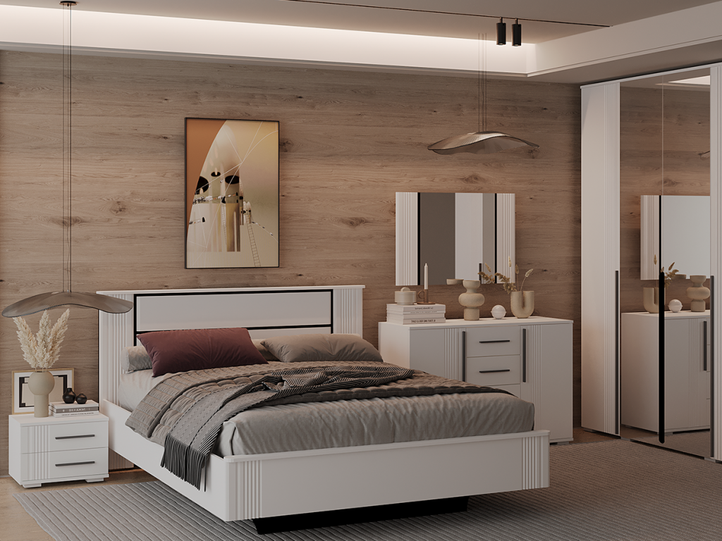 Главная Каталог Кровати Кровати из ЛДСП и МДФ АМАЛИЯ секция №2 кровать парящая 1400 БЕЛАЯ