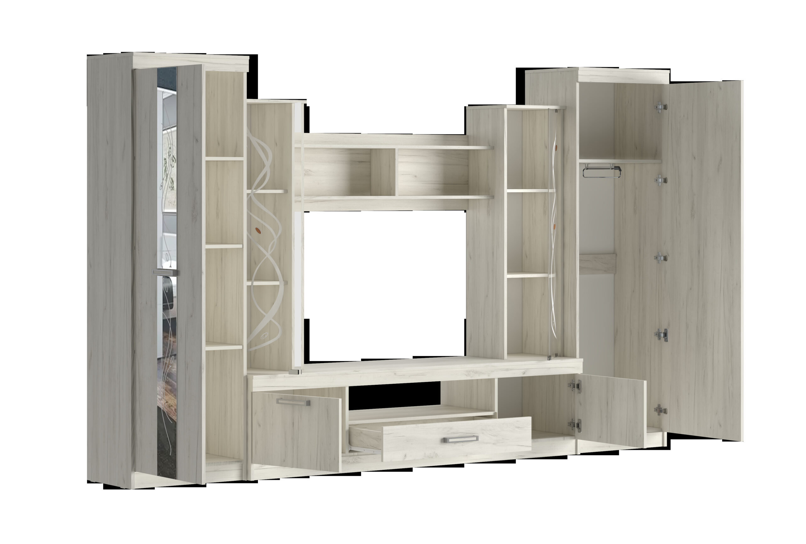 Главная Каталог Гостиные Готовые решения АТЛАНТИДА-2 Б НМ Стенка Дуб Крафт белый