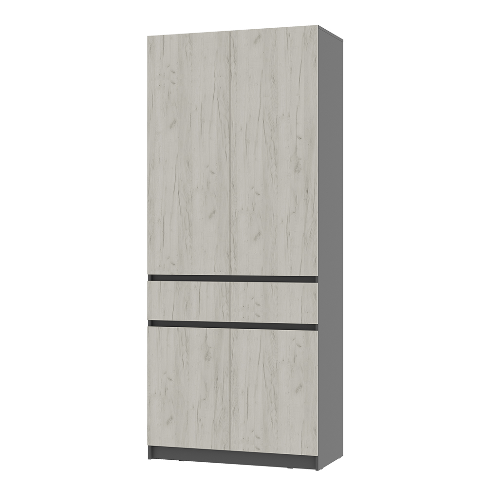 Главная Каталог Шкафы Двухстворчатые шкафы БАГИРА Шкаф 2-х створчатый ШК-03 1002х2384х510 Графит/Крафт белый