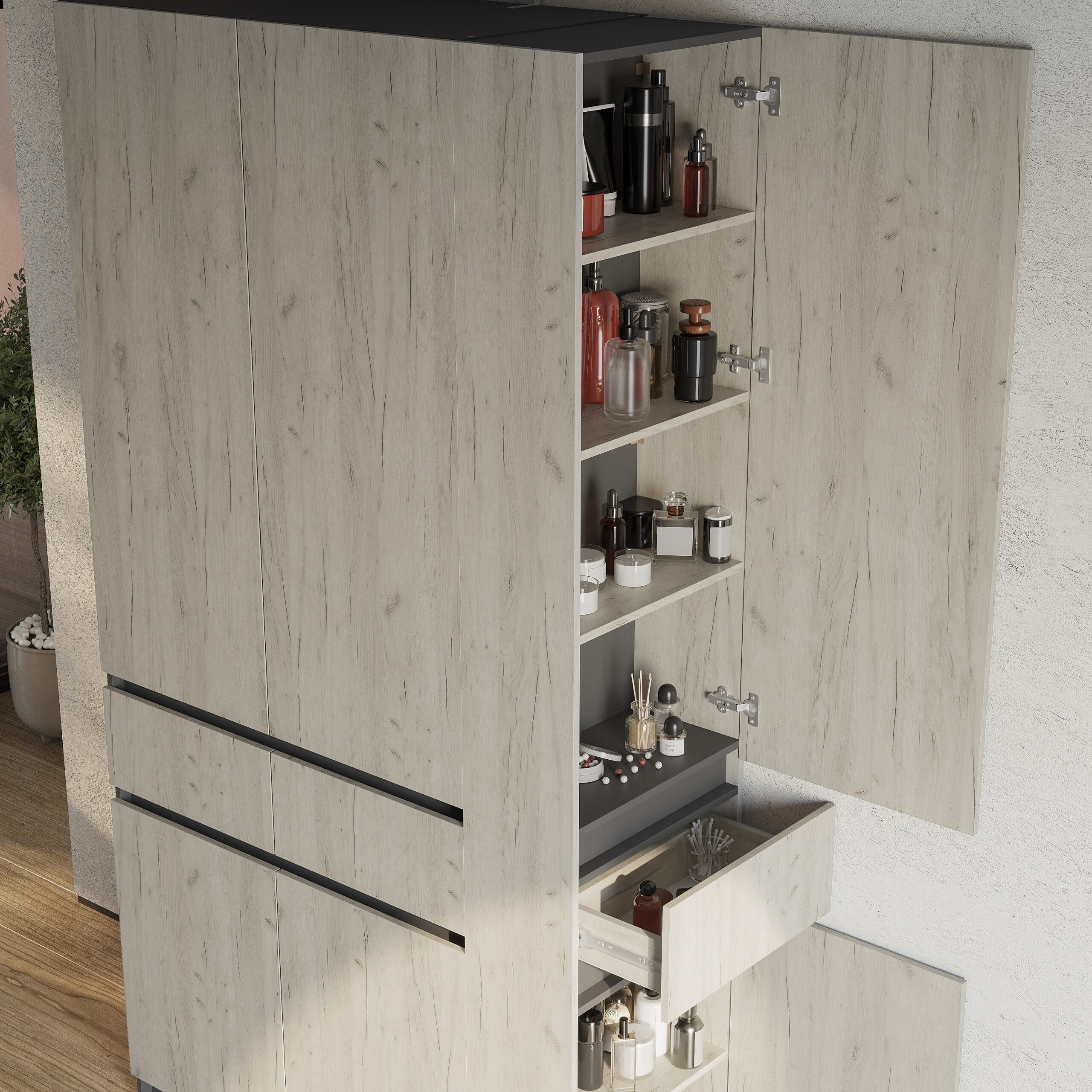 • Цвет корпуса/цвет фасада графит/дуб крафт белый