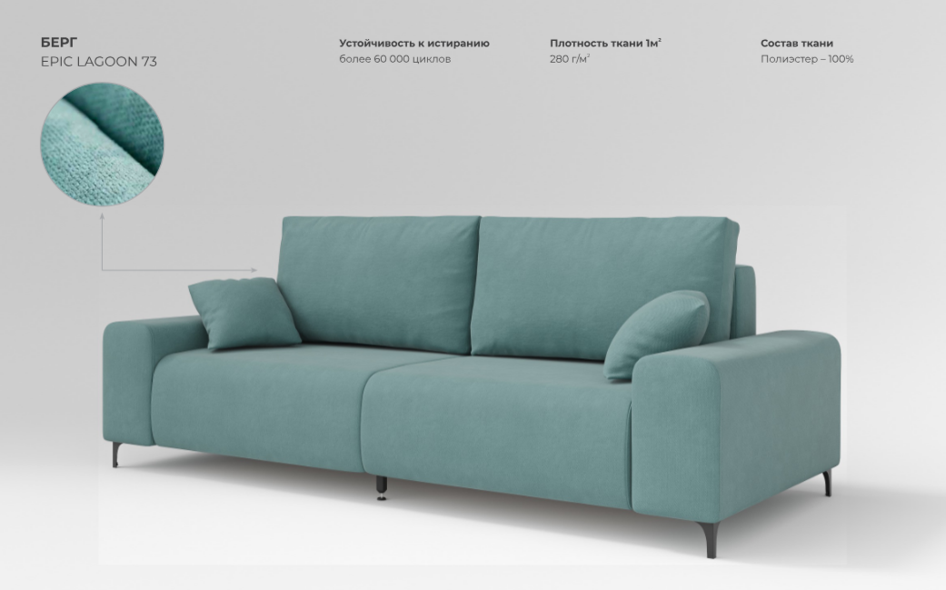 Главная Каталог Мягкая мебель БЕРГ КОМФОРТ (НПБ), ткань EPIC 73 Lagoon