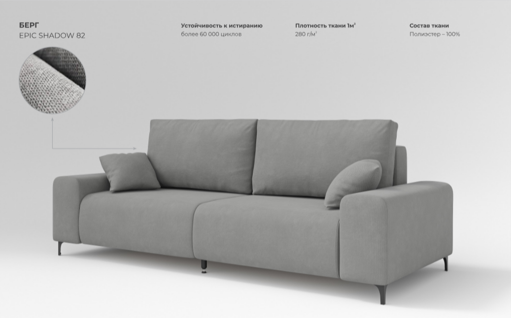 Главная Каталог Мягкая мебель БЕРГ КОМФОРТ (НПБ), ткань EPIC 82 Shadow
