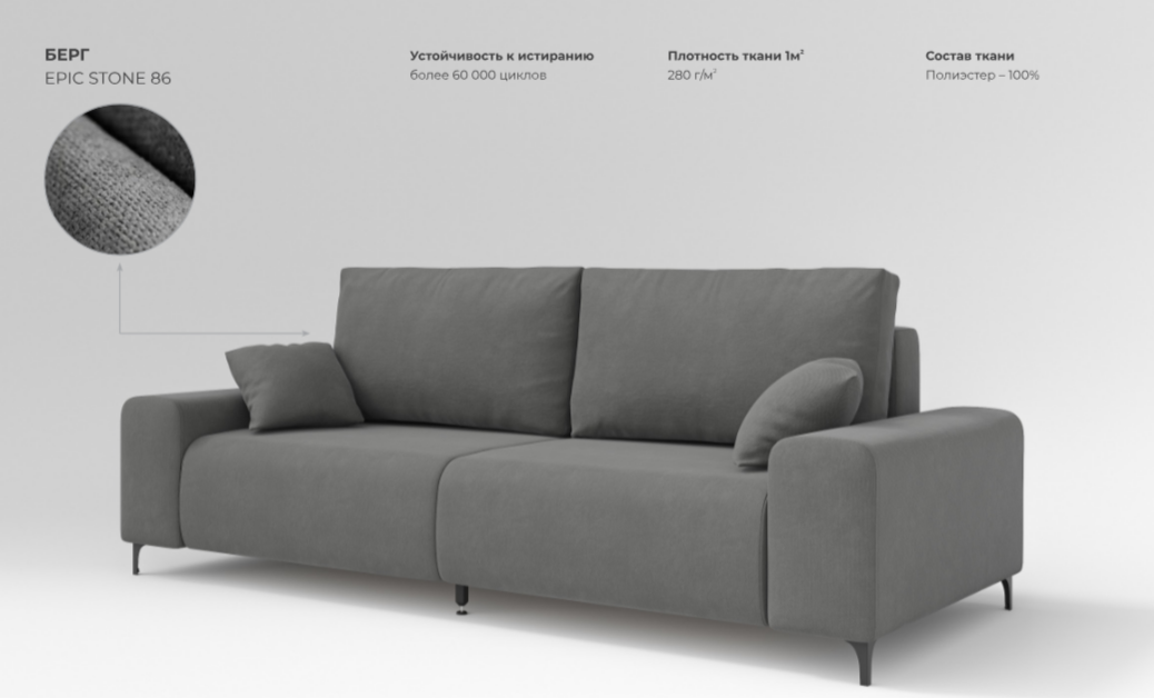 Главная Каталог Мягкая мебель БЕРГ КОМФОРТ (НПБ), ткань EPIC 86 Stone