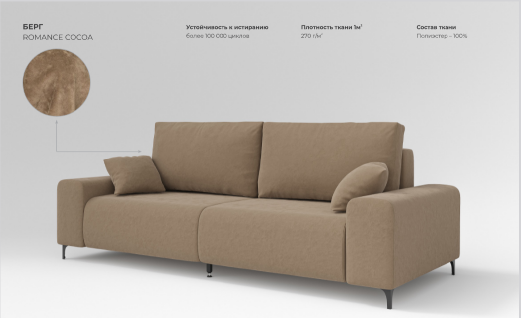 Главная Каталог Мягкая мебель БЕРГ КОМФОРТ (НПБ), ткань ROMANSE Cocоa