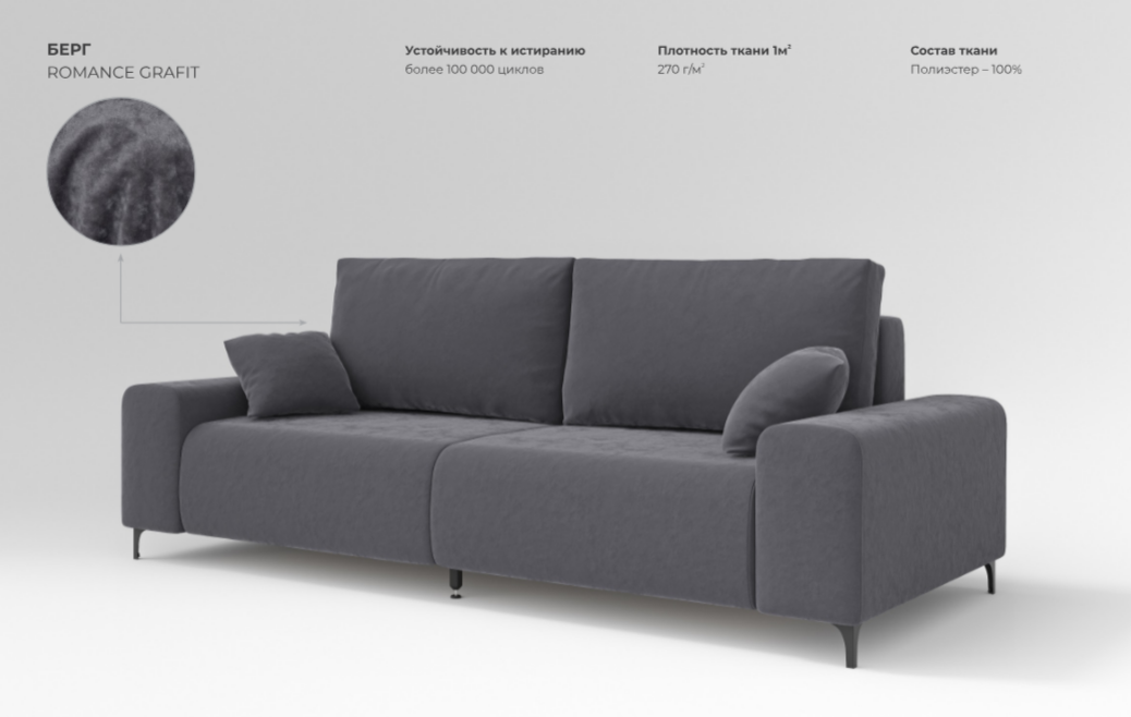 Главная Каталог Мягкая мебель БЕРГ КОМФОРТ (НПБ), ткань ROMANSE Grafit