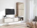 независимых модулей: навесного шкафа с 2-мя глухими фасадами, тумбы навесной и открытой