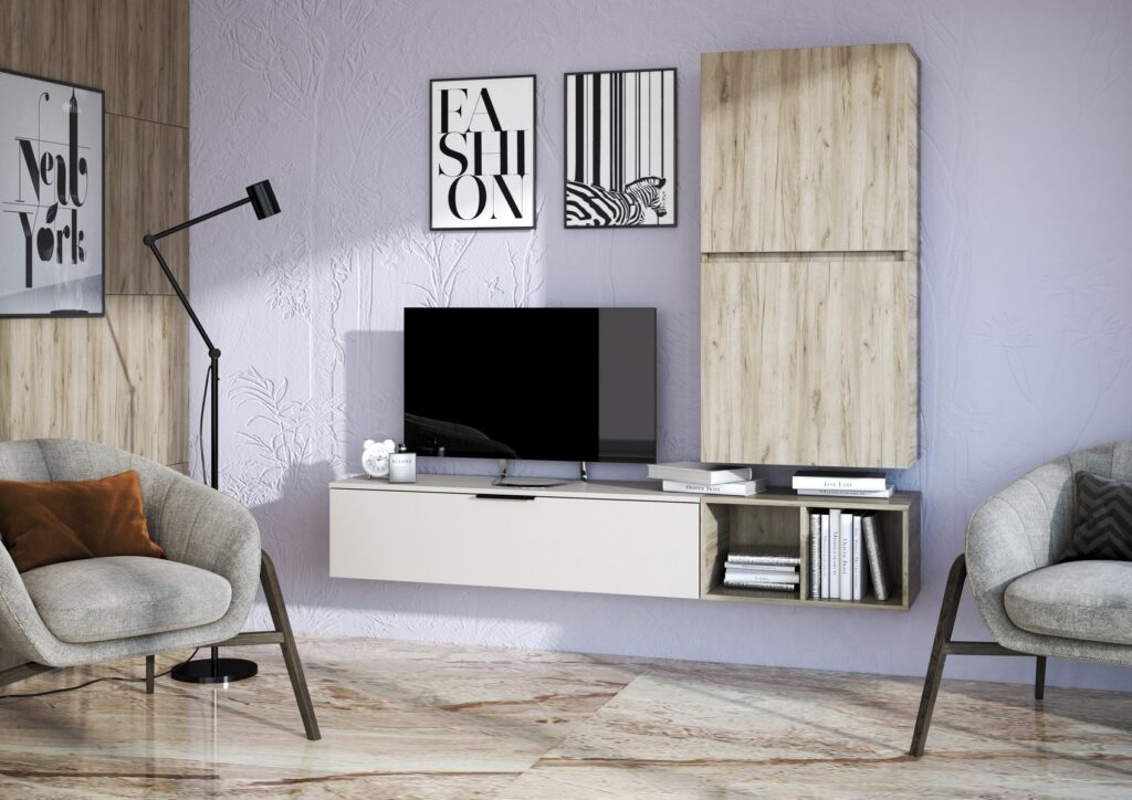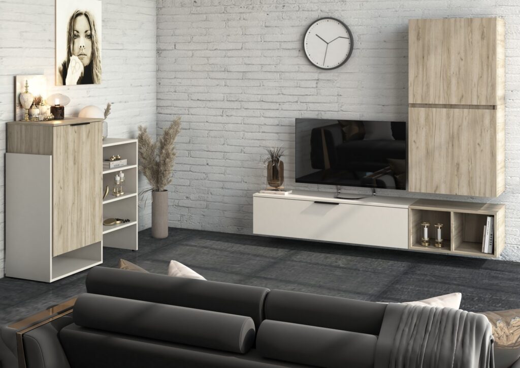 Главная Каталог Гостиные Готовые решения БОХО Гостиная НМ-001 Дуб Крафт серый/Фасад ЛДСП Кашемир