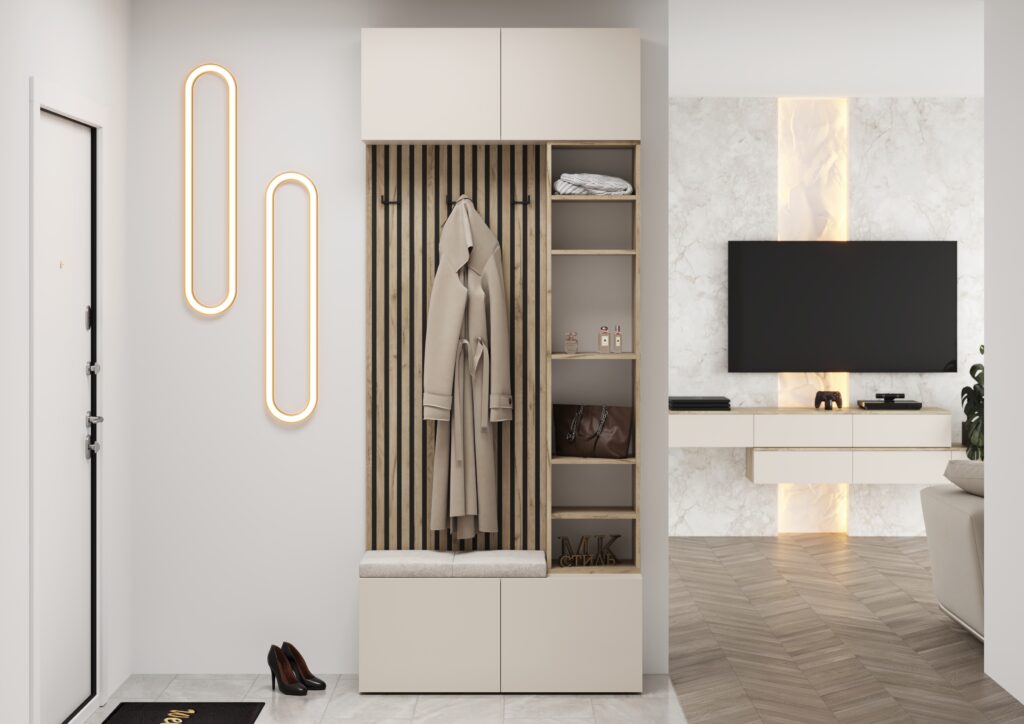 Навесная тумба — это удобное решение, которое предоставляет дополнительное пространство для хранения различных мелочей. Она отлично подходит для головных уборов и других мелких предметов.