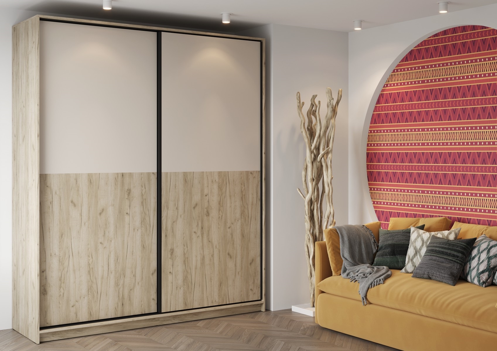 Главная Каталог Шкафы Шкафы-купе БОХО Шкаф-купе ШК-005 Дуб Крафт серый /Фасад ЛДСП Кашемир