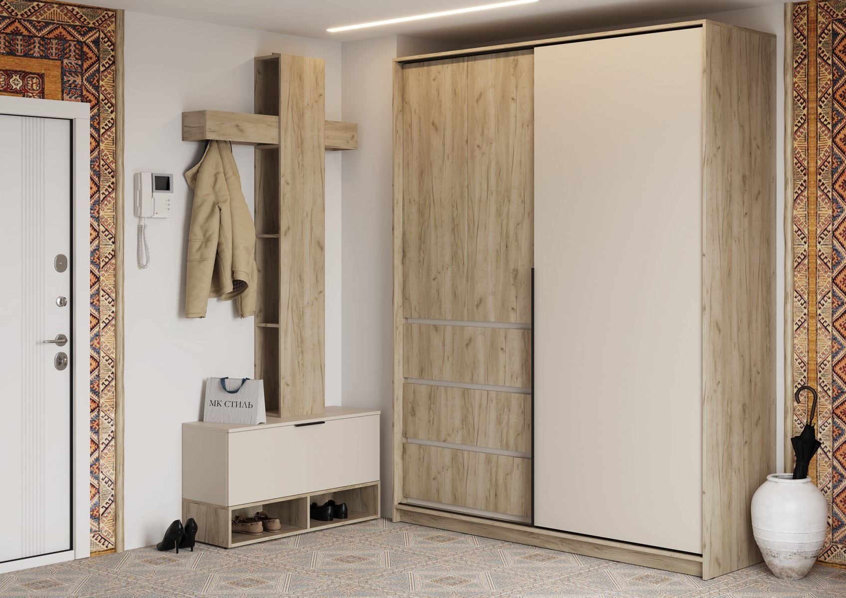 Главная Каталог Шкафы Шкафы-купе БОХО Шкаф-купе ШК-006 Дуб Крафт серый /Фасад ЛДСП Кашемир