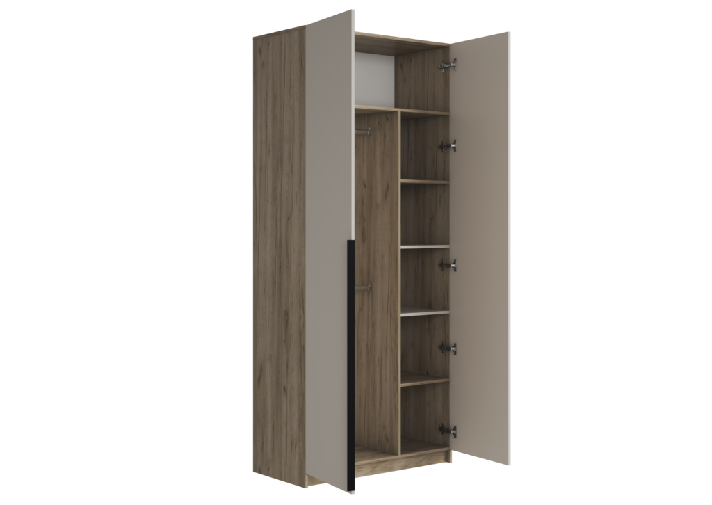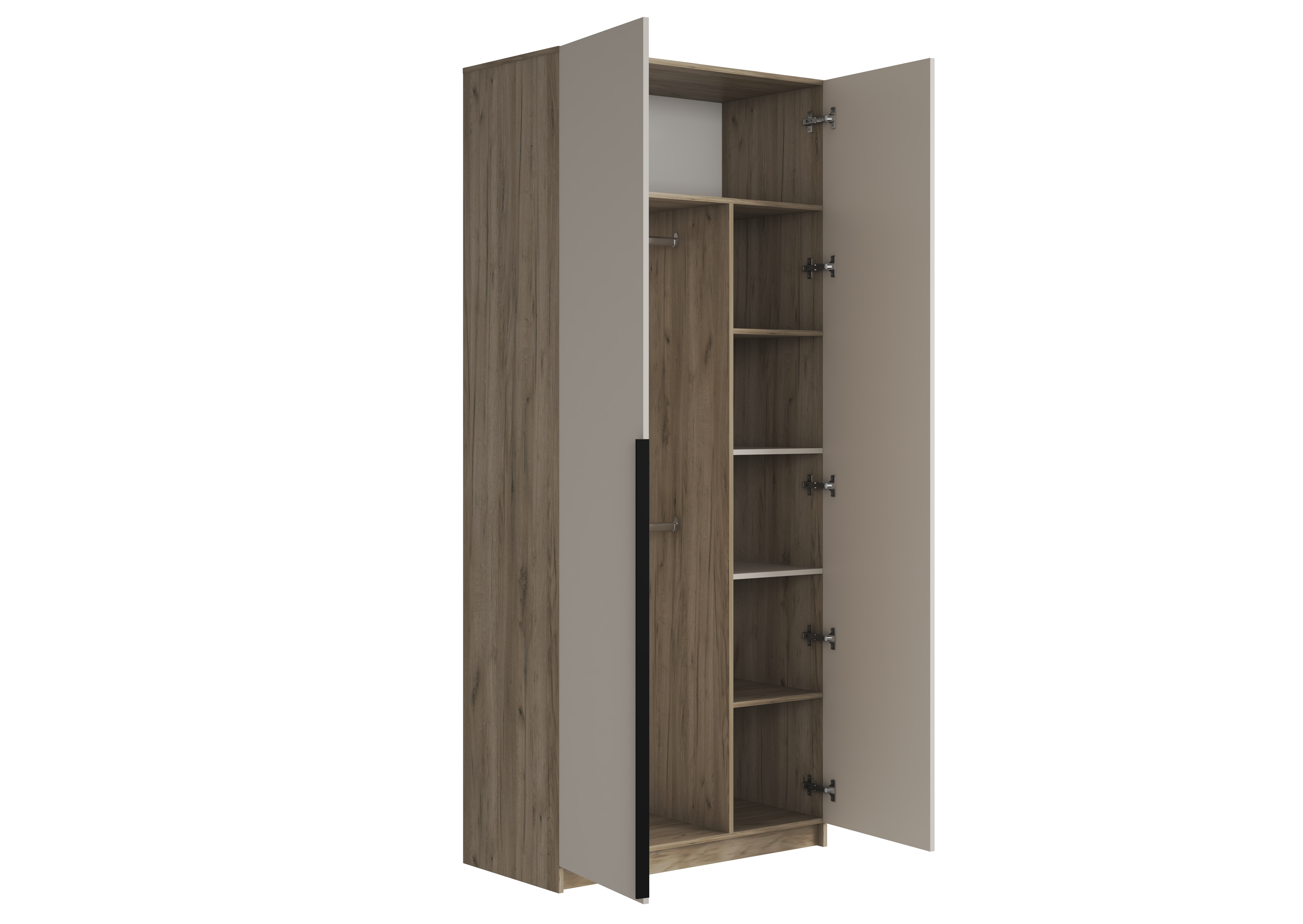 Главная Каталог Шкафы Двухстворчатые шкафы БОХО Шкаф ШК-002 Дуб Крафт серый /Фасад ЛДСП Кашемир