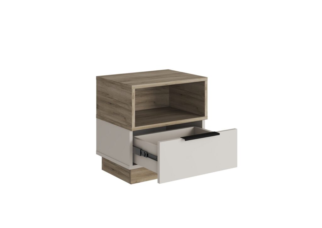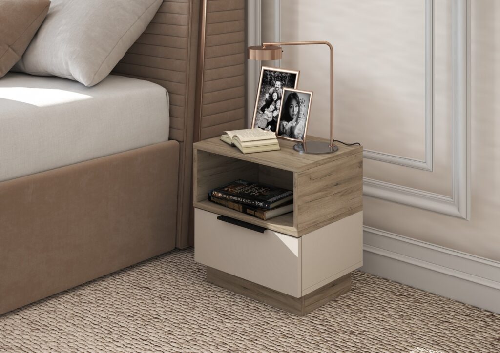 БОХО Тумба прикроватная ТМ-002 Дуб Крафт серый /Фасад ЛДСП — Кашемир