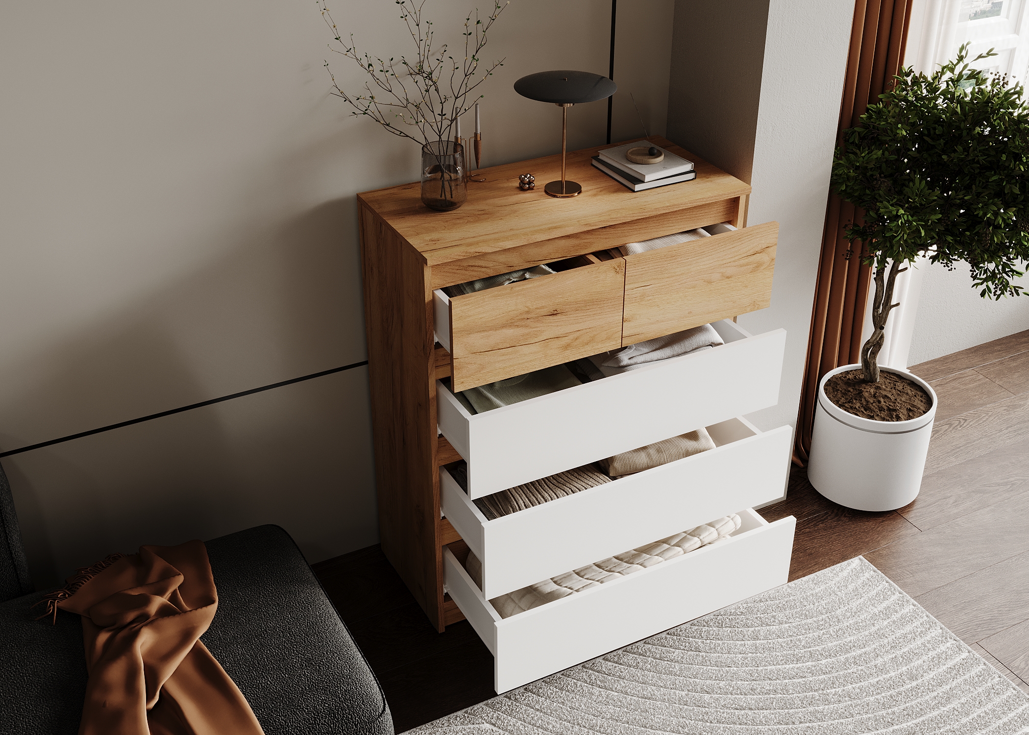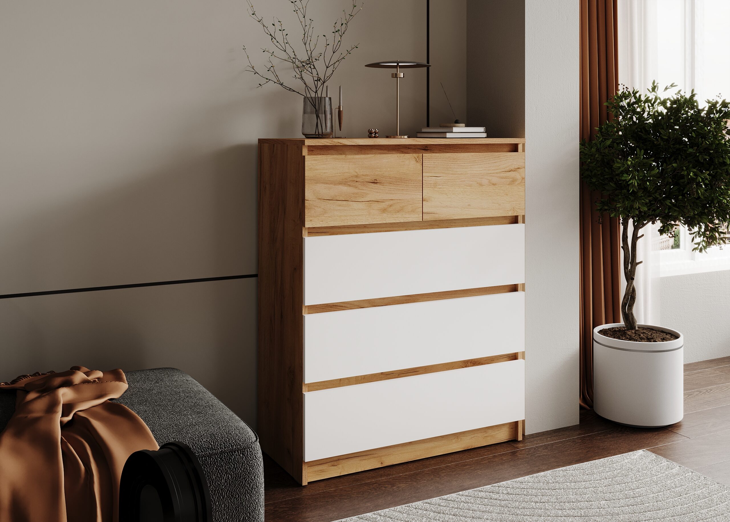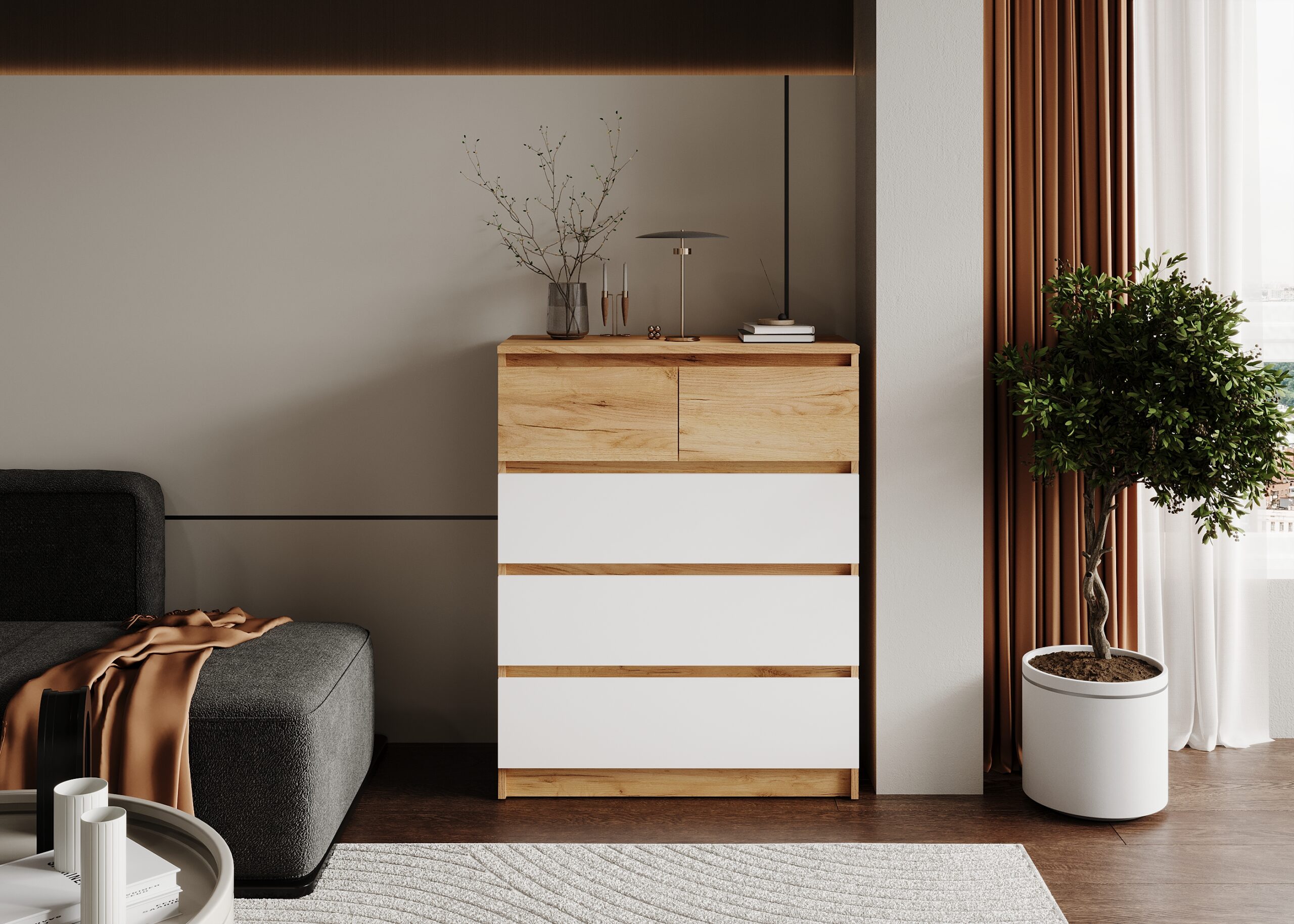 Главная Каталог Малогабаритная мебель Комоды БОСТОН ЛАЙТ Комод КМ-001 Дуб Крафт золотой Белый (Гладкий)