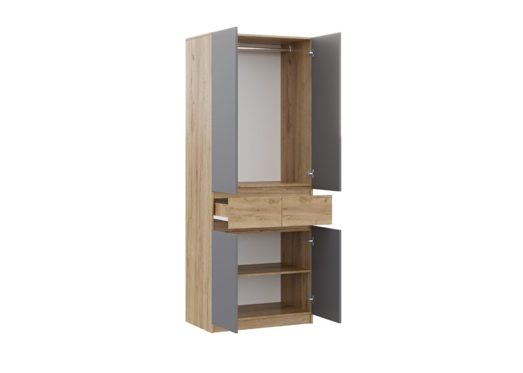 Главная Каталог Шкафы Двухстворчатые шкафы БОСТОН ЛАЙТ Шкаф ШК-002 Дуб Крафт золотой/ЛДСП Серый Шифер