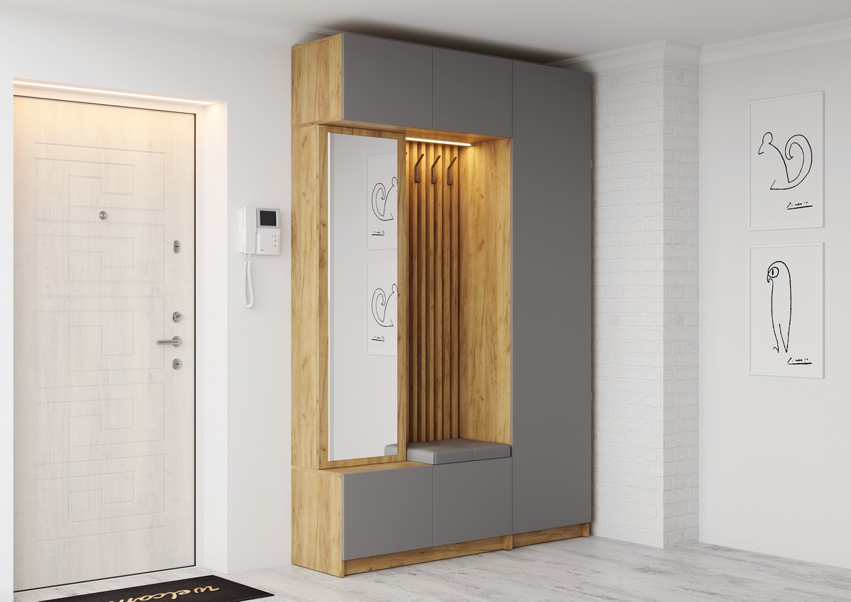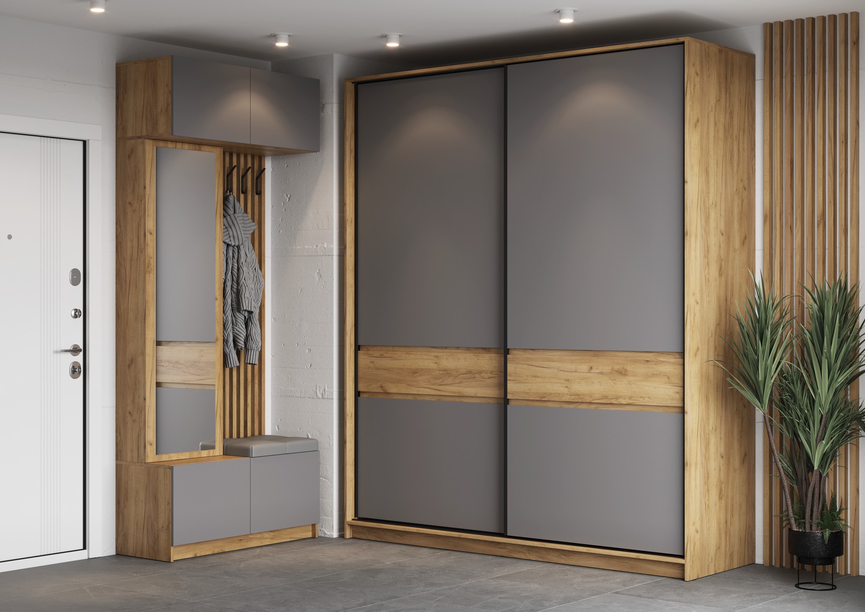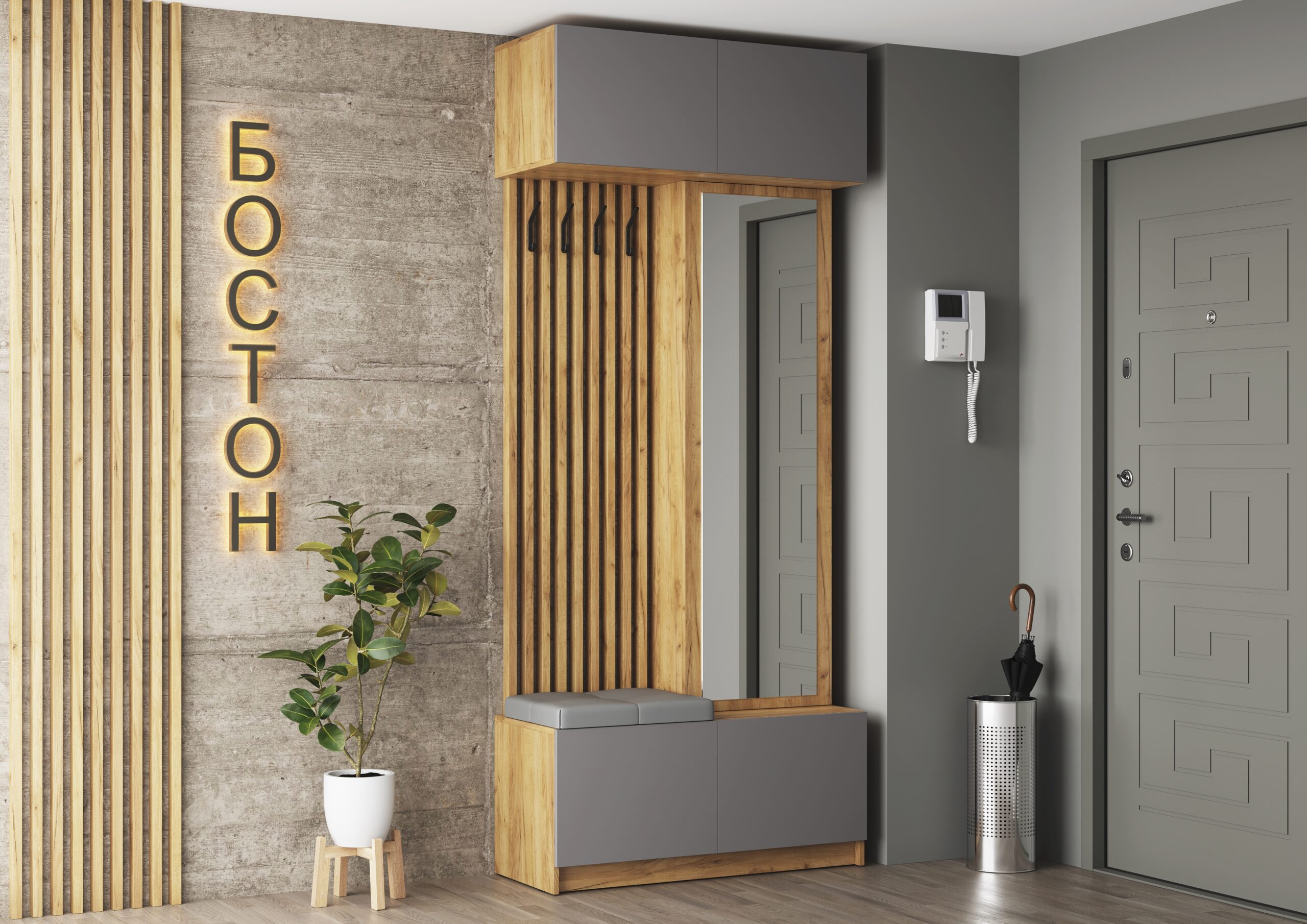 Главная Каталог Прихожие Готовые решения БОСТОН прихожая Дуб Крафт золотой/Серый шифер