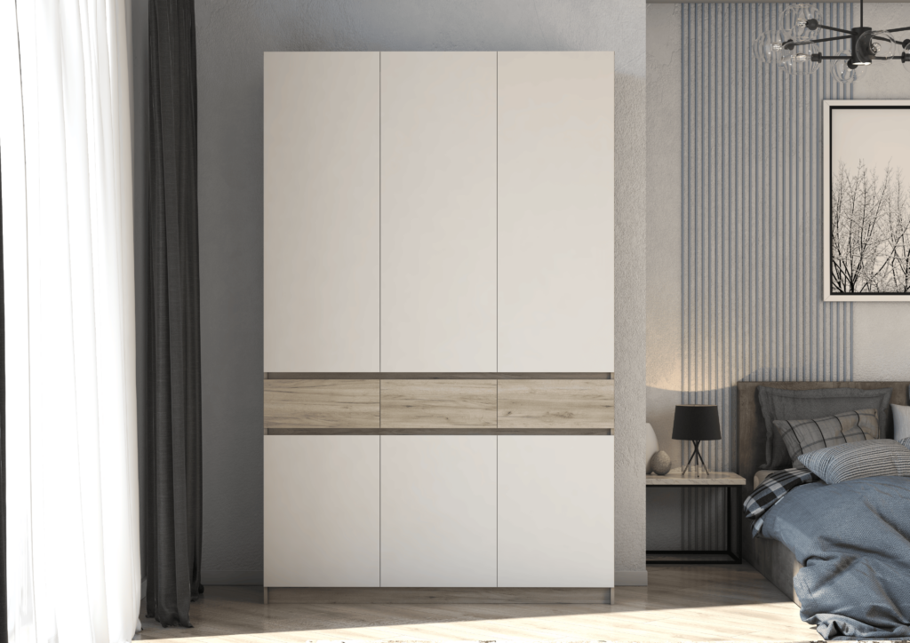 Этот трехстворчатый шкаф – идеальный выбор для обладателя большого гардероба. Более того, шкафы серии Бостон можно комбинировать между собой, и из нескольких изделий этой линейки легко можно создать крайне емкую систему хранения домашних вещей.