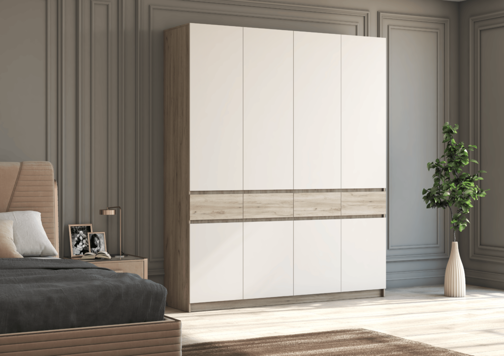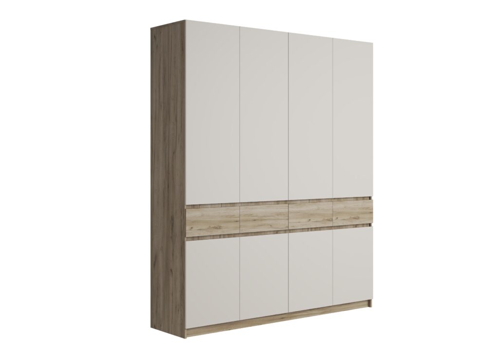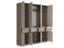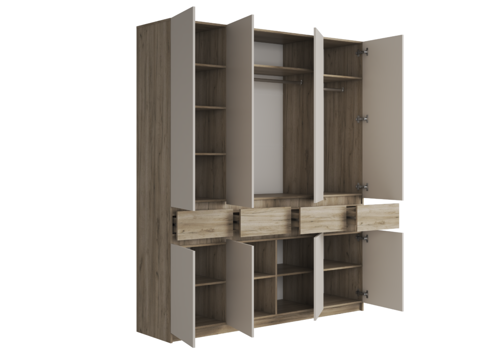 Если богатству вашего гардероба можно только позавидовать, то рекомендуем вам обратить свое внимание на четырехстворчатый шкаф линейки Бостон. Четыре выдвижных ящика, две металлические штанги для хранения одежды, а также множество полок – здесь есть все, что нужно большой семье. А если вам этого мало, то шкафы серии Бостон можно комбинировать между собой, и из нескольких изделий этой линейки легко можно создать крайне емкую систему хранения домашних вещей.
