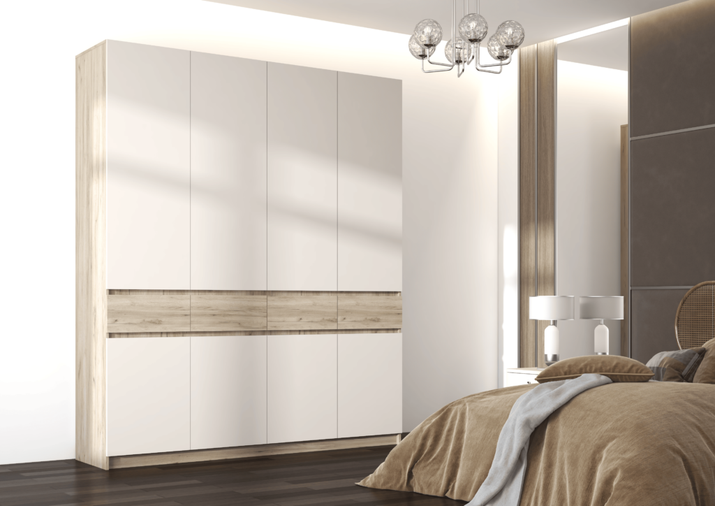 • Шкаф выполнен полностью без ручек, все его элементы открываются за фасад. Для этого предусмотрены специальные зазоры между фасадами, прикрытые декоративными планками