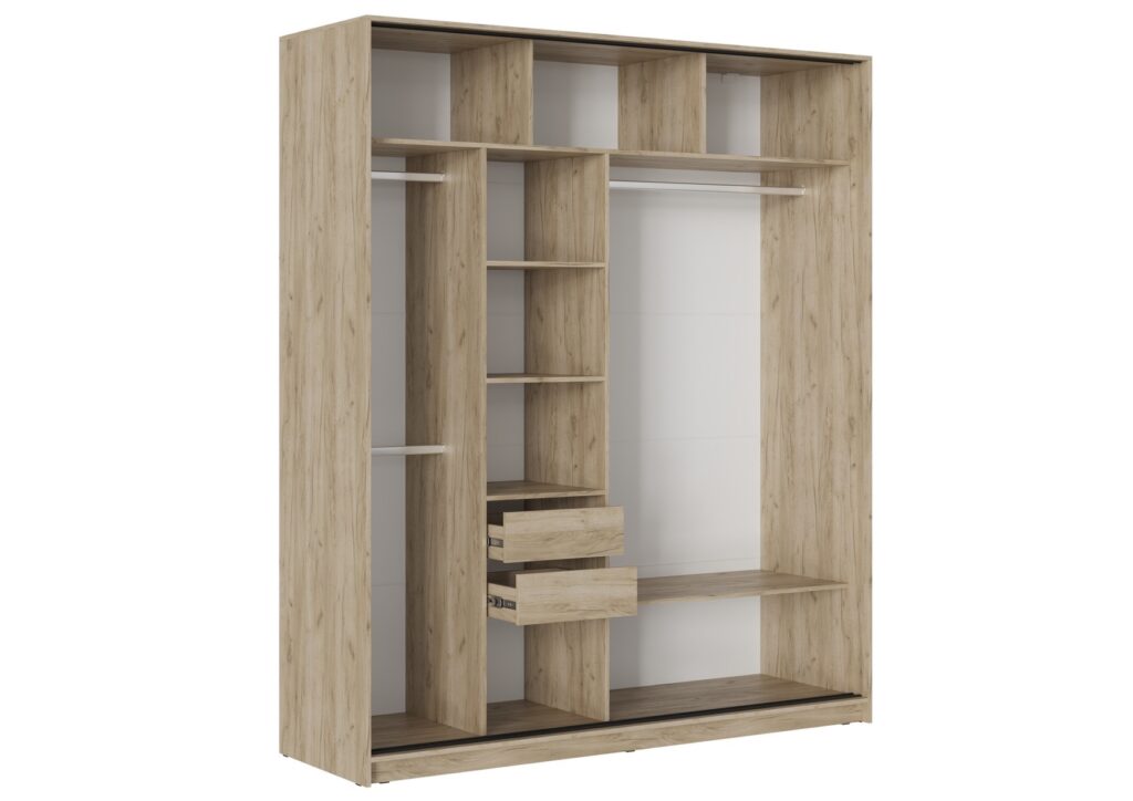 В правой части шкафа (габарит Д.1026 х В.1890 х Г.522 мм) находится штанга и съёмная полка на флипперах.