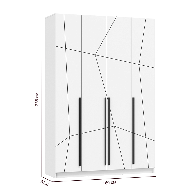 БРАНДО Шкаф для одежды 67.13 (4-х дв.) БЕЛЫЙ МДФ ГЕОМЕТРИЯ (h2400)