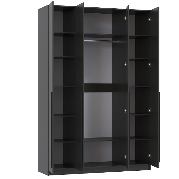 Шкаф для одежды 67.13 Брандо (4-х дв.) (h2400) ЛДСП New производства фабрики Олмеко представляет собой четырехдверный распашной шкаф из ЛДСП с наполнением в виде полок и штанги.