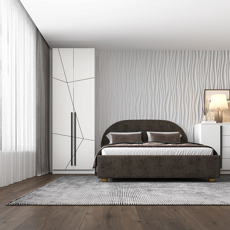 Шкаф для одежды 67.14 Брандо (2-х дв.) (h2400) МДФ New (Геометрия) производства фабрики Олмеко представляет собой двухдверный распашной шкаф с фасадами из МДФ с геометрическим рисунком.