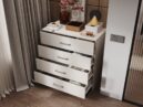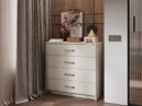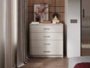 Комод ЭВА КМ-023 в цвете «Кашемир» выполнен в стиле современный минимализм. Его отличают лаконичные формы, отсутствие лишнего декора и нейтральная матовая текстура, что позволяет интегрировать его в интерьеры скандинавского стиля, хай-тек или неоклассики.