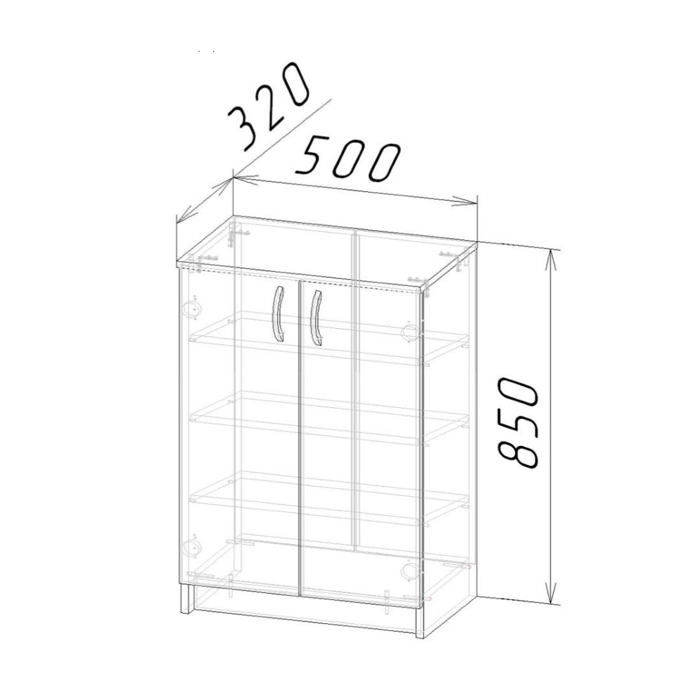 Габариты: ширина — 500 мм, глубина — 320 мм, высота — 850 мм.