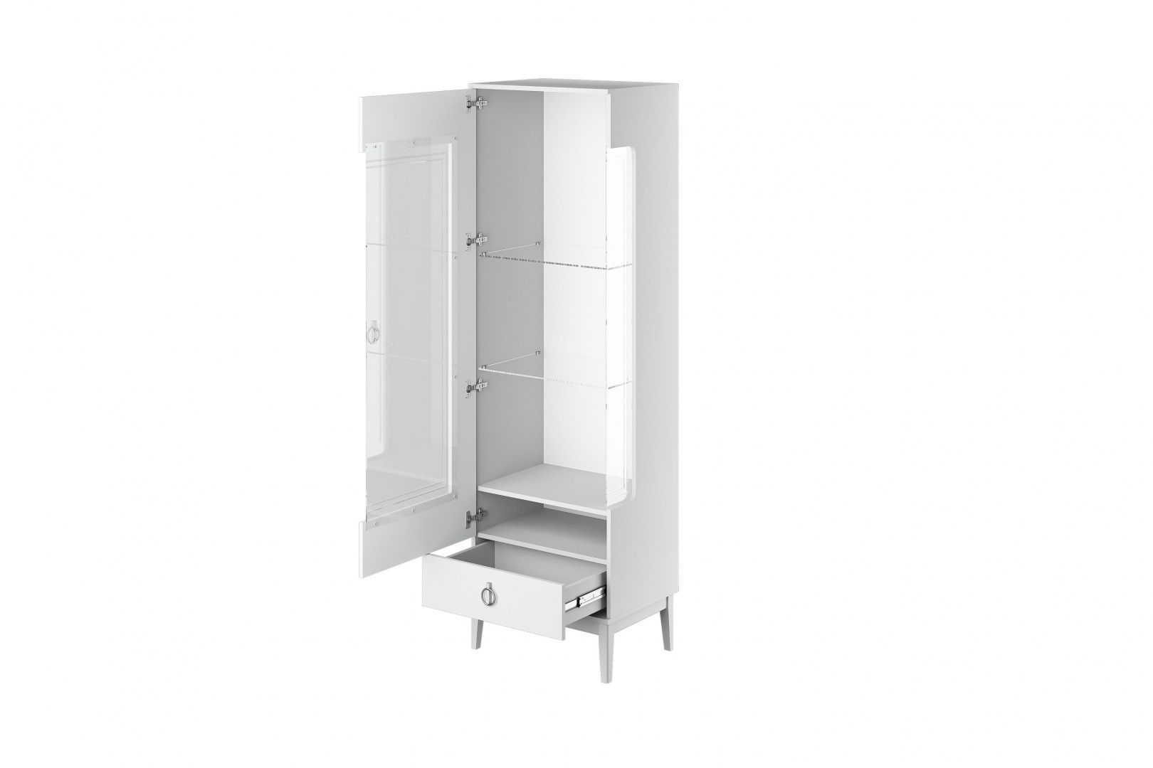 Главная Каталог Шкафы Шкафы комбинированные ФАРГО Белый ЛАК, Шкаф с витриной 1 дверь (левый)