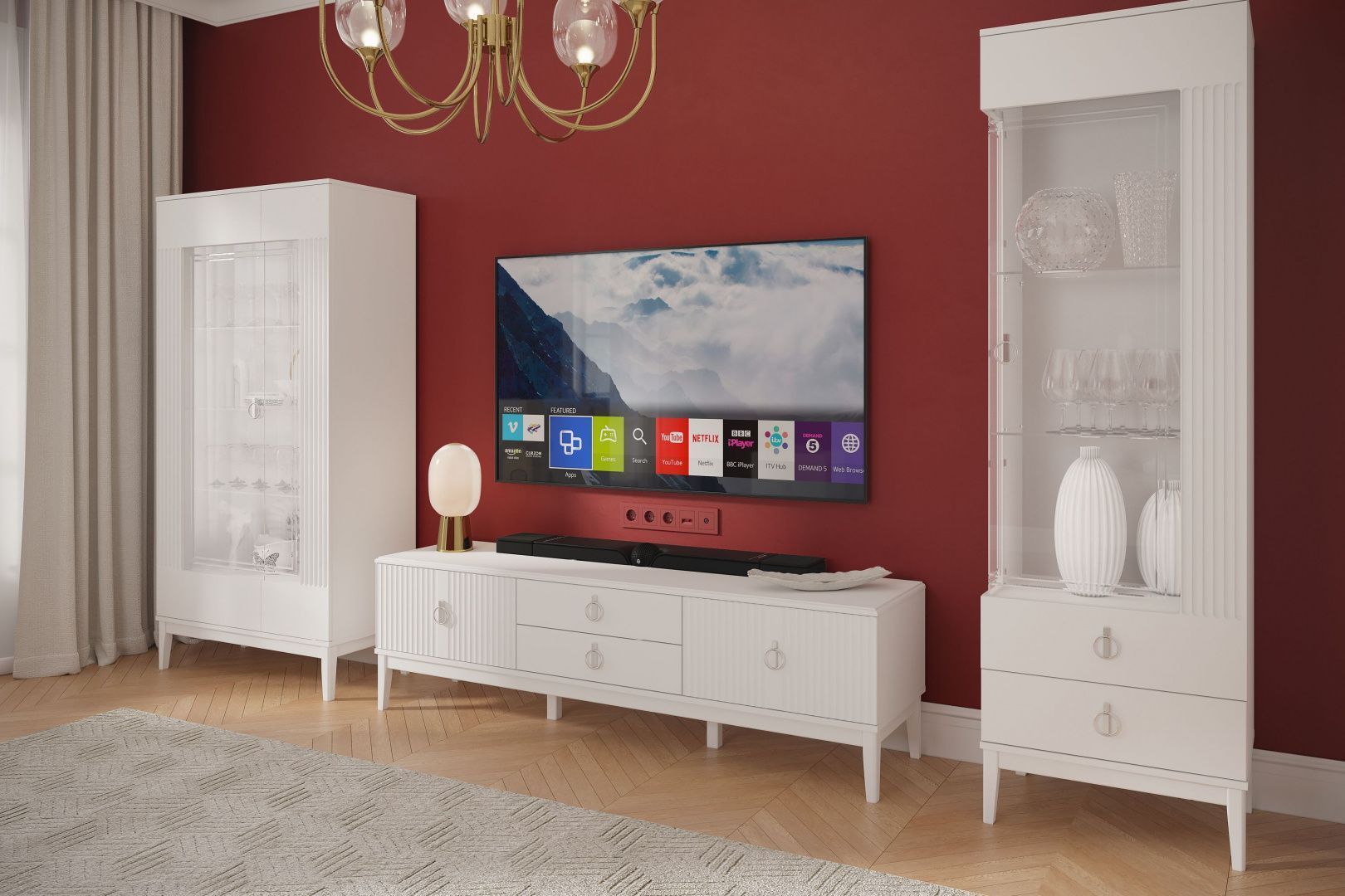 Главная Каталог Гостиные Тумбы под ТВ ФАРГО Белый ЛАК Тумба ТВ 4 ящика