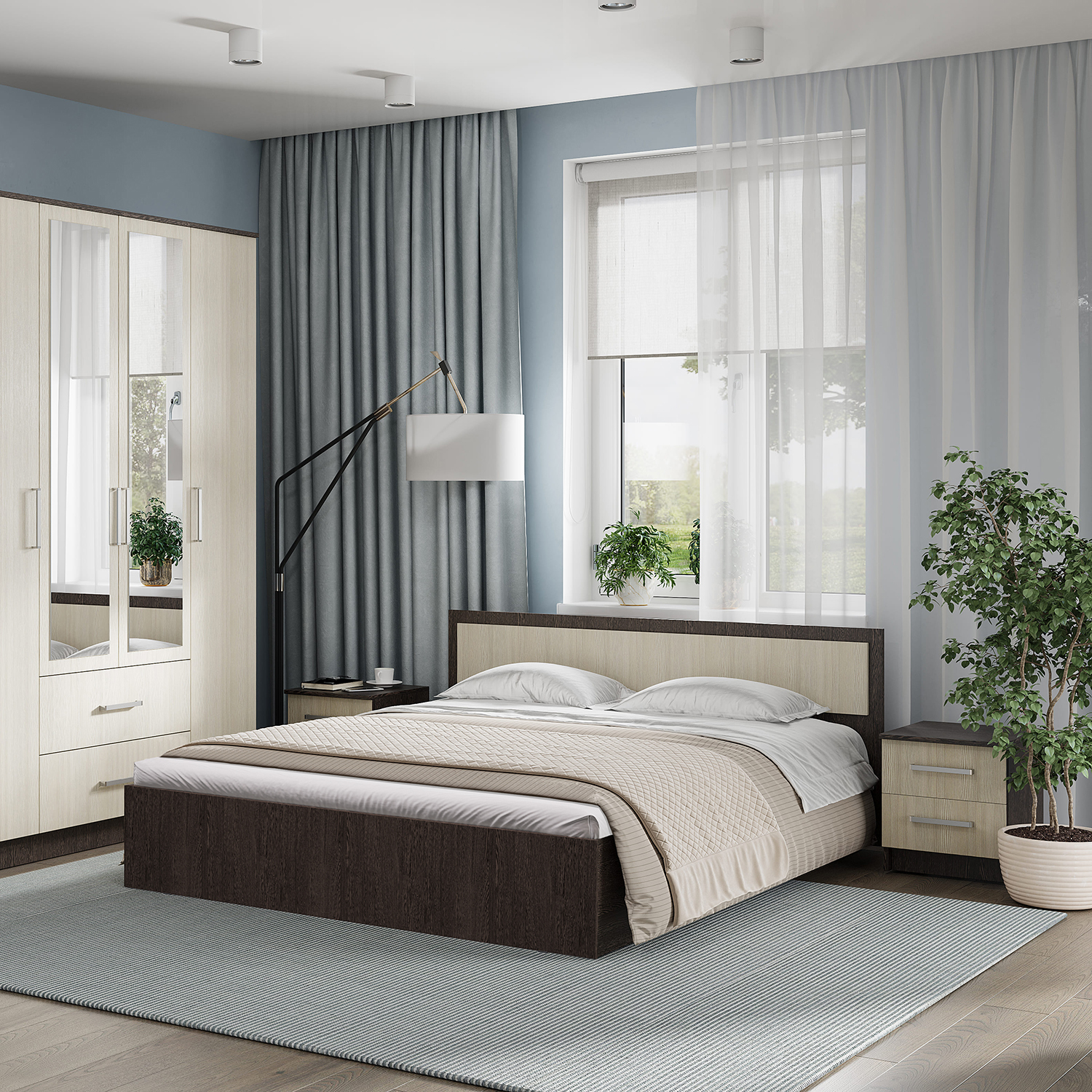 Двуспальная кровать «Фиеста» выполнена из высококачественной ЛДСП в цвете «венге». Изголовье имеет светлую вставку цвета «лоредо». У кровати отсутствуют ножки, это избавит вас от скопления пыли под ней. Данная модель выпускается на фабрике без основания. Основание приобретается отдельно — проложки ДСП 1,4 — размер 1400х420 мм в комплекте 4 шт, настил ЛДСП 1,4 (с кромкой) — размер 1400х380 мм в комплекте 5 шт, настил реечный 1,4.