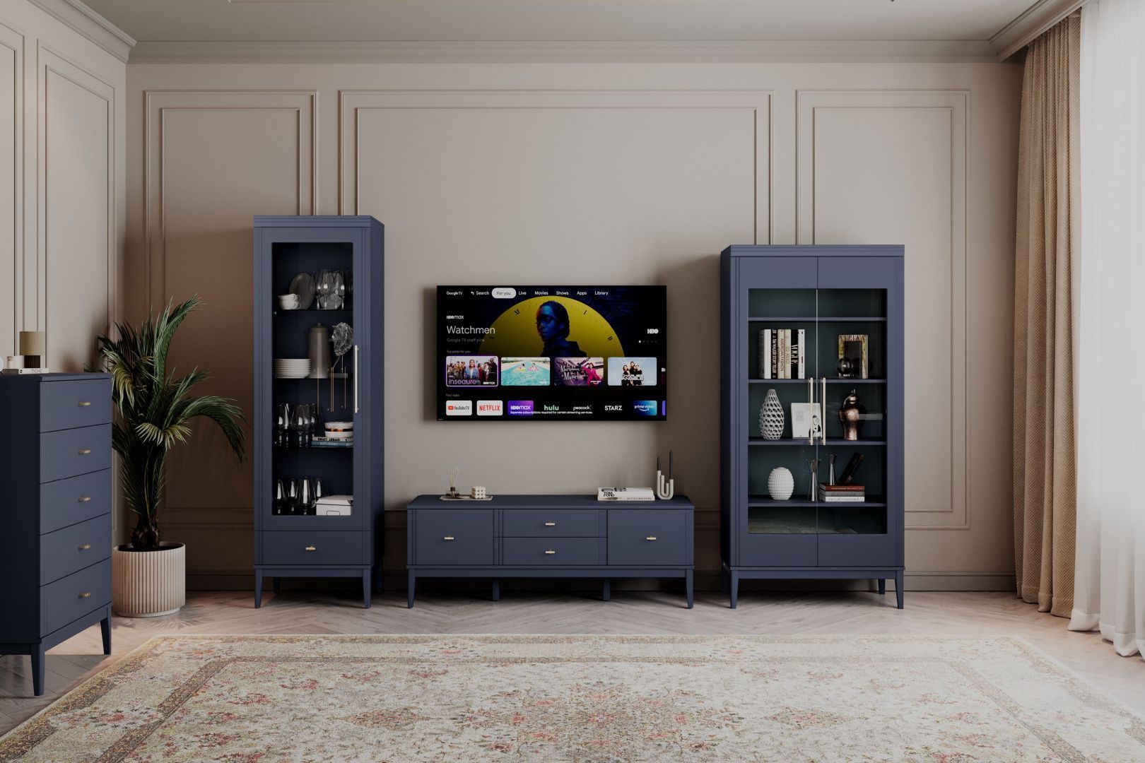 Гостиная«Джали» в цвете Тёмный Лазурный — это современная модульная система от российского производителя Bravo Мебель (Браво Мебель). Коллекция выделяется глубоким синим оттенком фасадов с матовым лаковым покрытием и фигурной фрезеровкой.