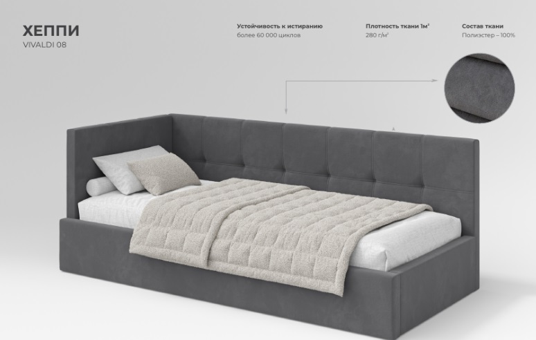 Главная Каталог Кровати Детские кровати ХЕППИ с утяжкой кровать с ГПМ 900х2000 ткань VIVALDI 08 (DARK GREY) темно-серый