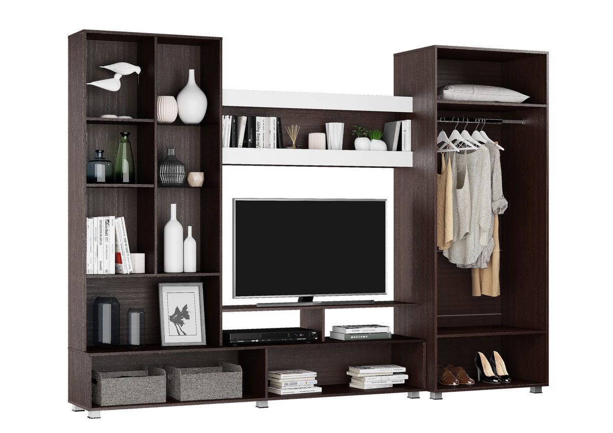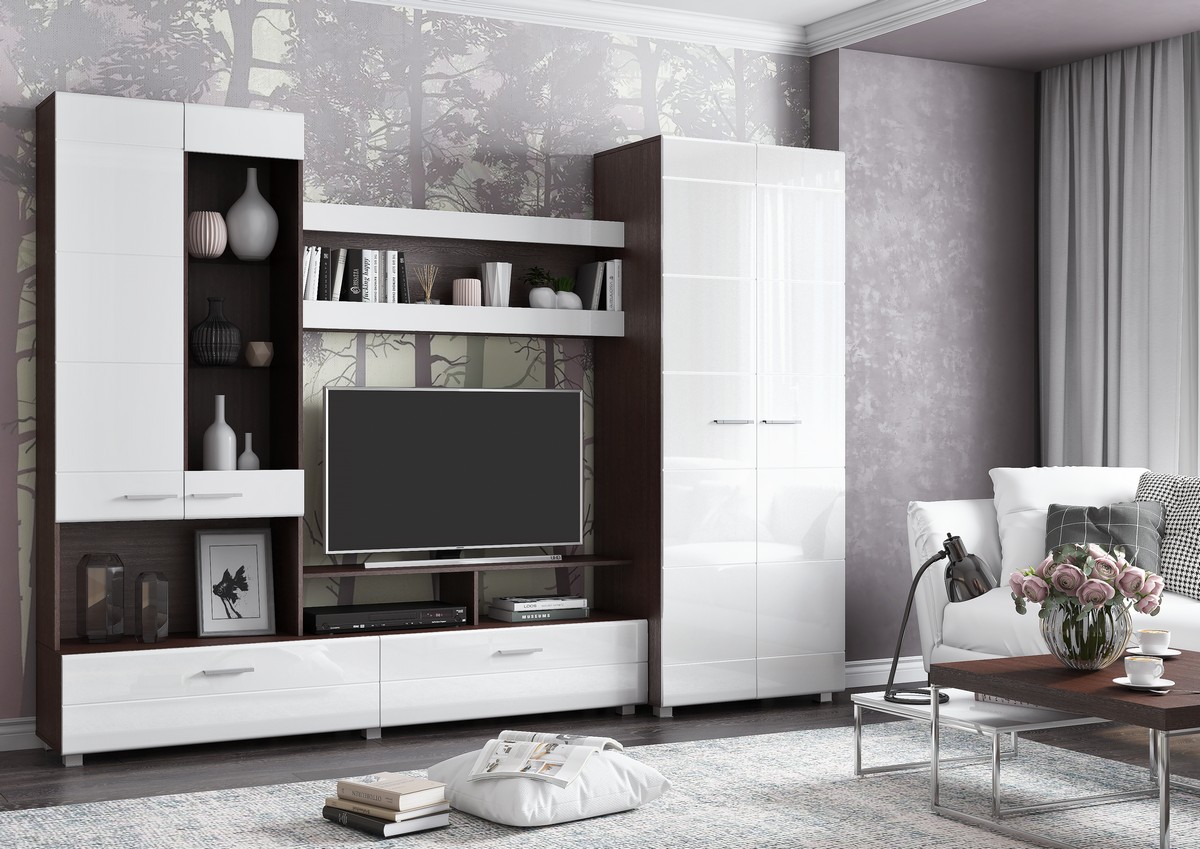 Главная Каталог Гостиные Готовые решения КАМИЛА Стенка МДФ венге/белый глянец