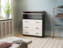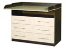 Пеленальный комод К-1.2 в цветовом исполнении «Венге / Дуб молочный» — это компактная модель из ЛДСП с откидной панелью для пеленания и четырьмя выдвижными ящиками.