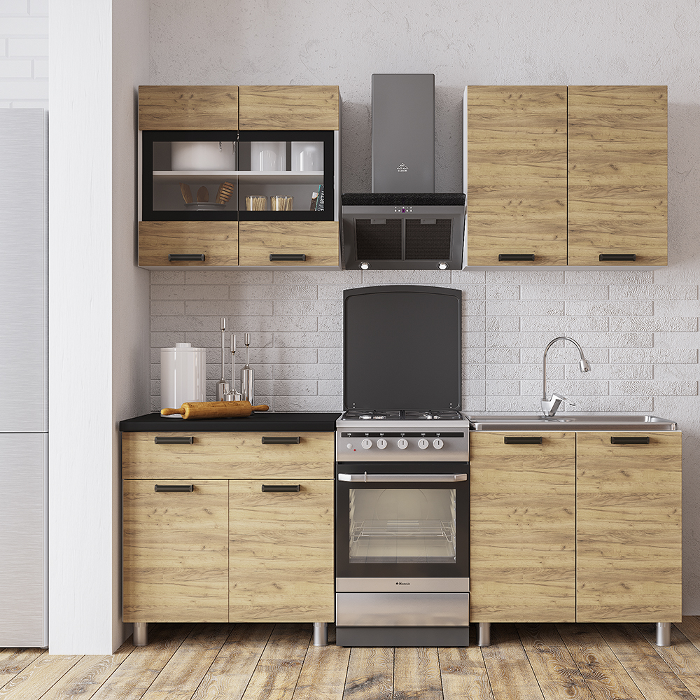 КРАФТ кухня 1,6м ЛДСП дуб крафт, 38мм ЧЕРНЫЙ ЯНТАРЬ столешница 800мм