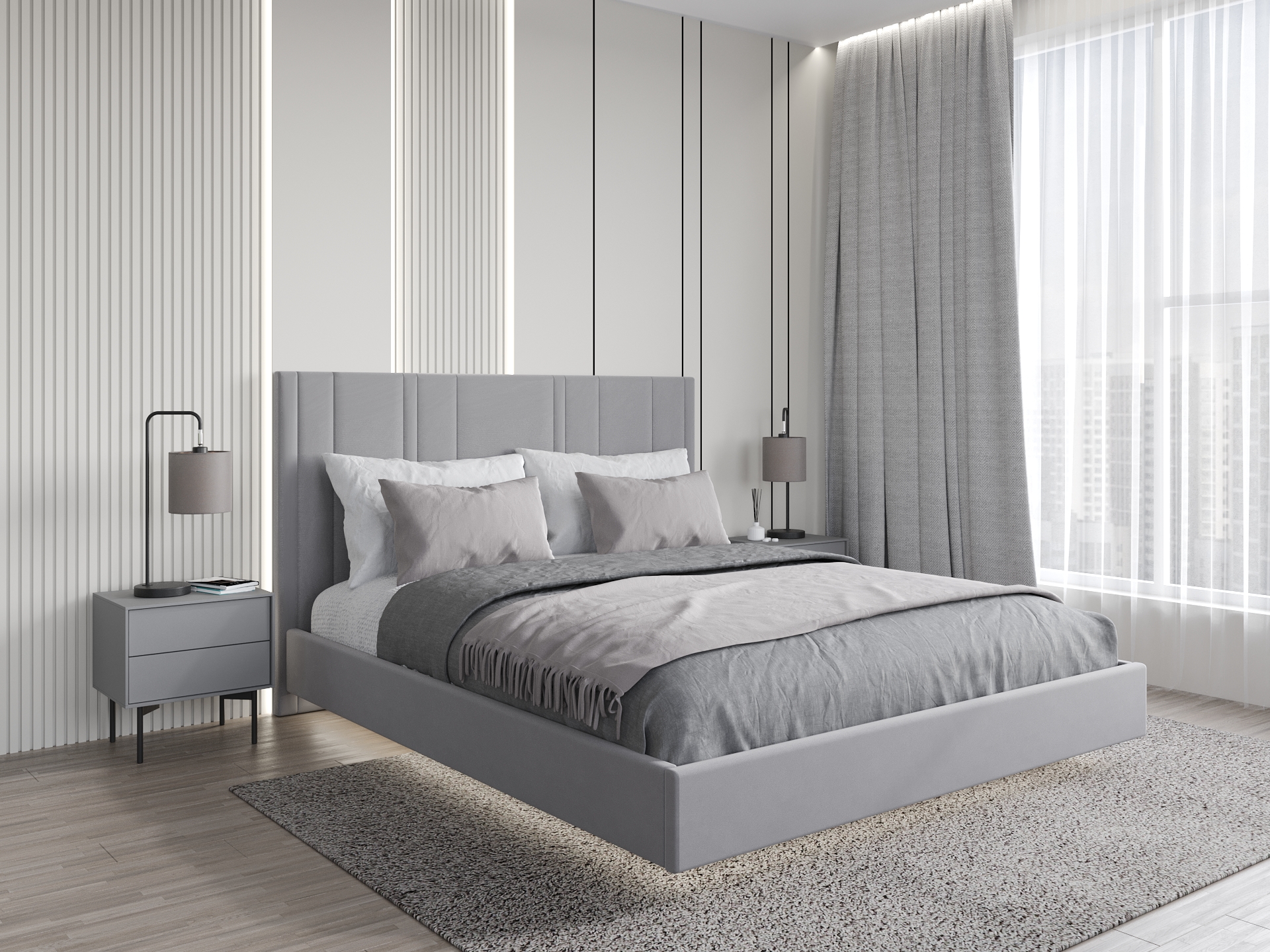 Главная Каталог Кровати Кровати интерьерные Кровать Глория 1600 с подъемным механизмом ткань Ameli 10 (светло-серый)