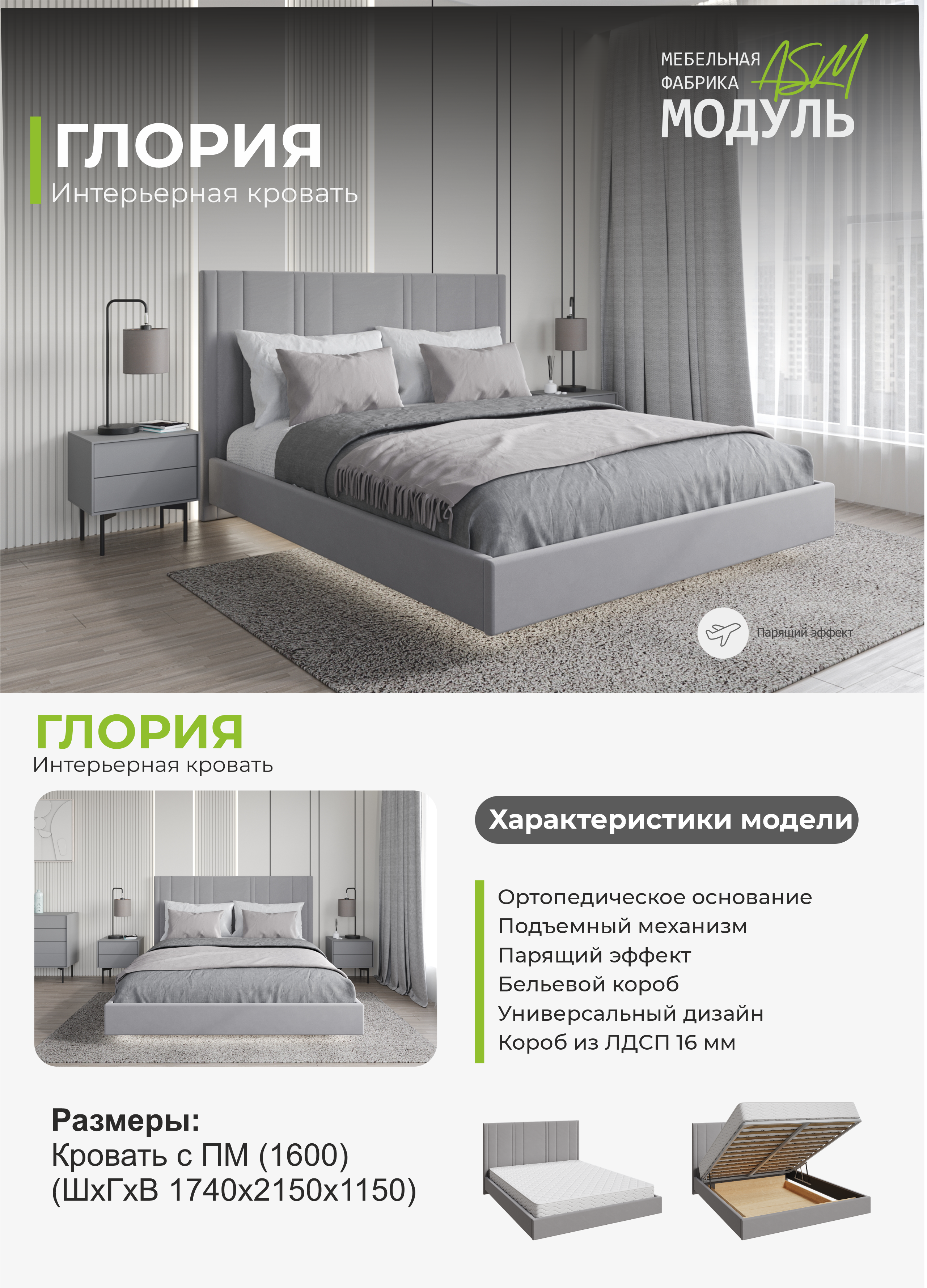 Габариты кровати (Ш*Г*В) 1740*2150*1150 мм