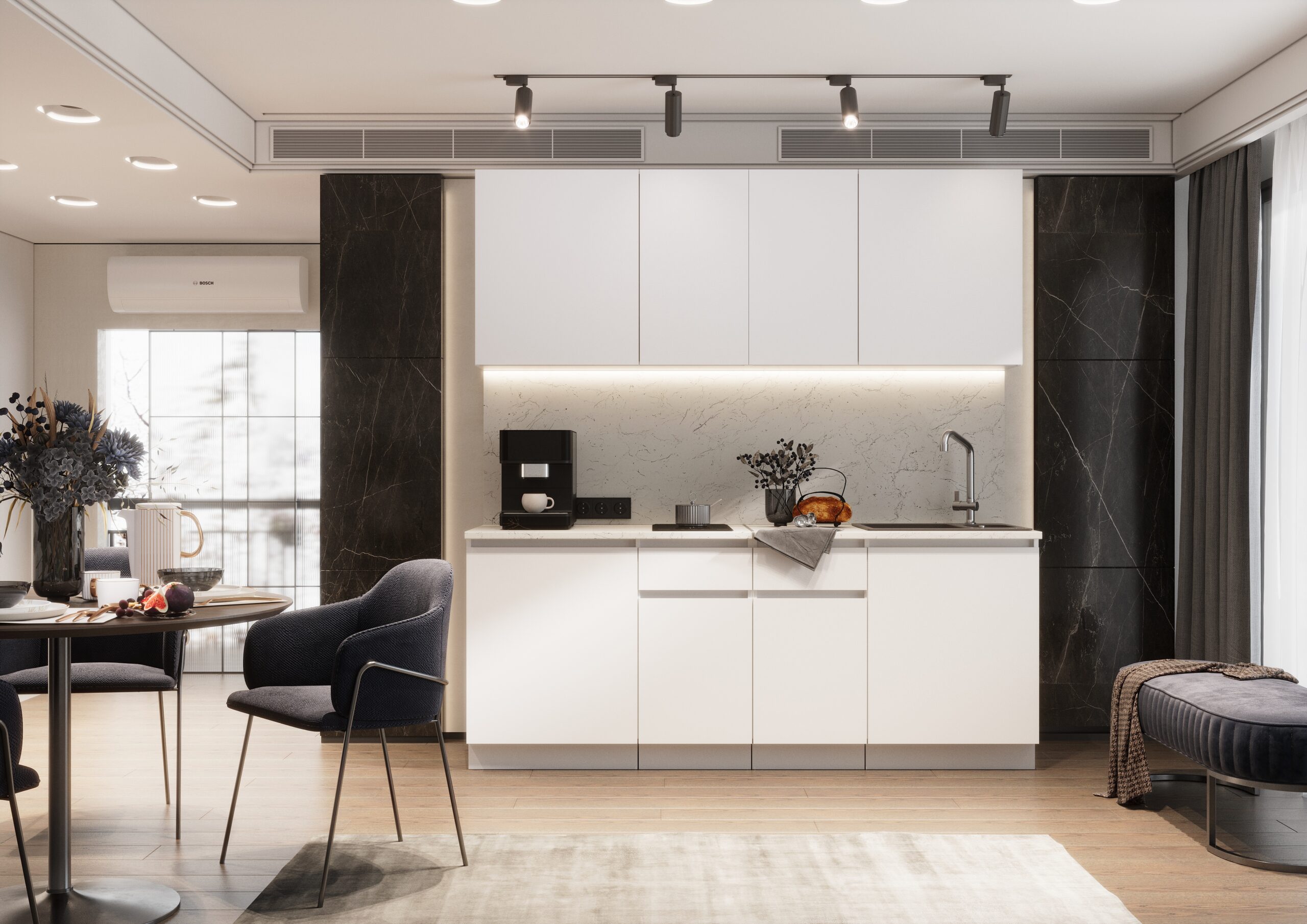 Кухня ГР Гретта 2,0 (ЛДСП) вариант 2 (Белая шагрень/Белая шагрень)
