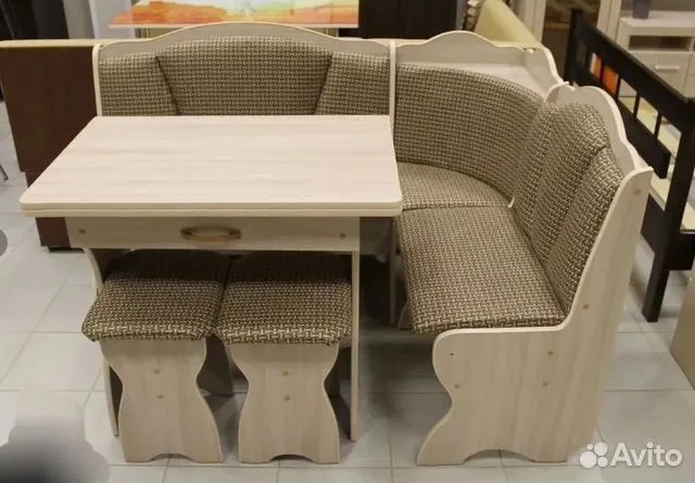 Размеры: угловая скамья (ШГ)1500х1100, стол 85х57 ,в разложенном виде 85х114;