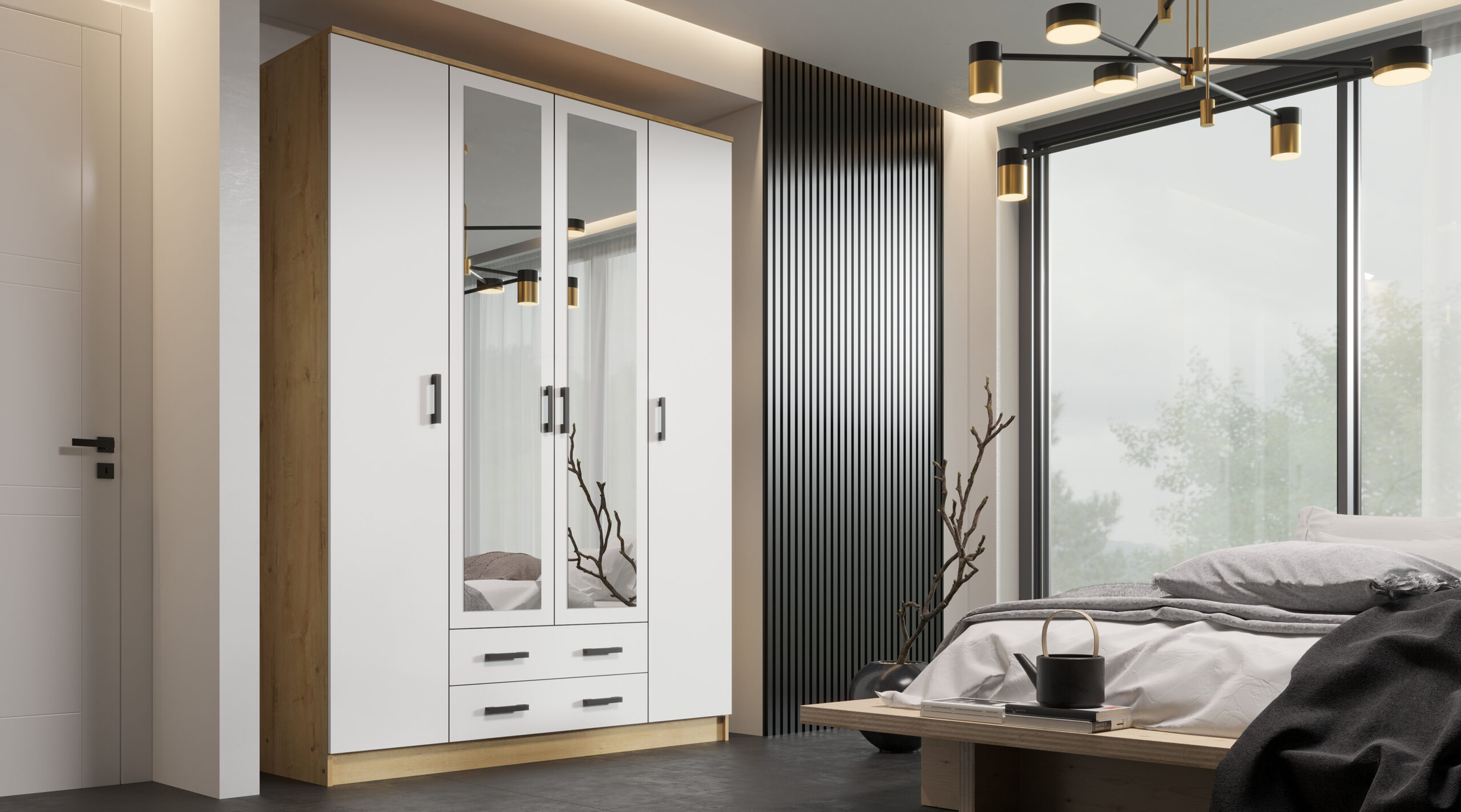 Главная Каталог Шкафы Шкафы 4-х створчатые КВАДРО Шкаф (З) ДУБ ВОТАН/БЕЛЫЙ ГЛАДКИЙ