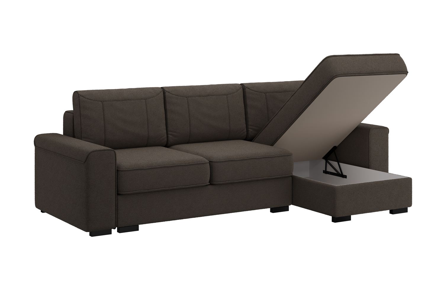 Его размеры позволяют с комфортом расположиться всем членам семьи. Хочется особого удобства? Для этого есть просторная оттоманка, под которой расположен вместительный короб для белья.