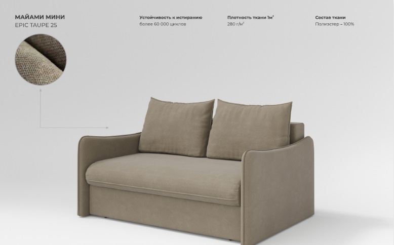 Главная Каталог Диваны МАЙАМИ МИНИ 120 Комфорт диван, ткань EPIC 25 TAUPE