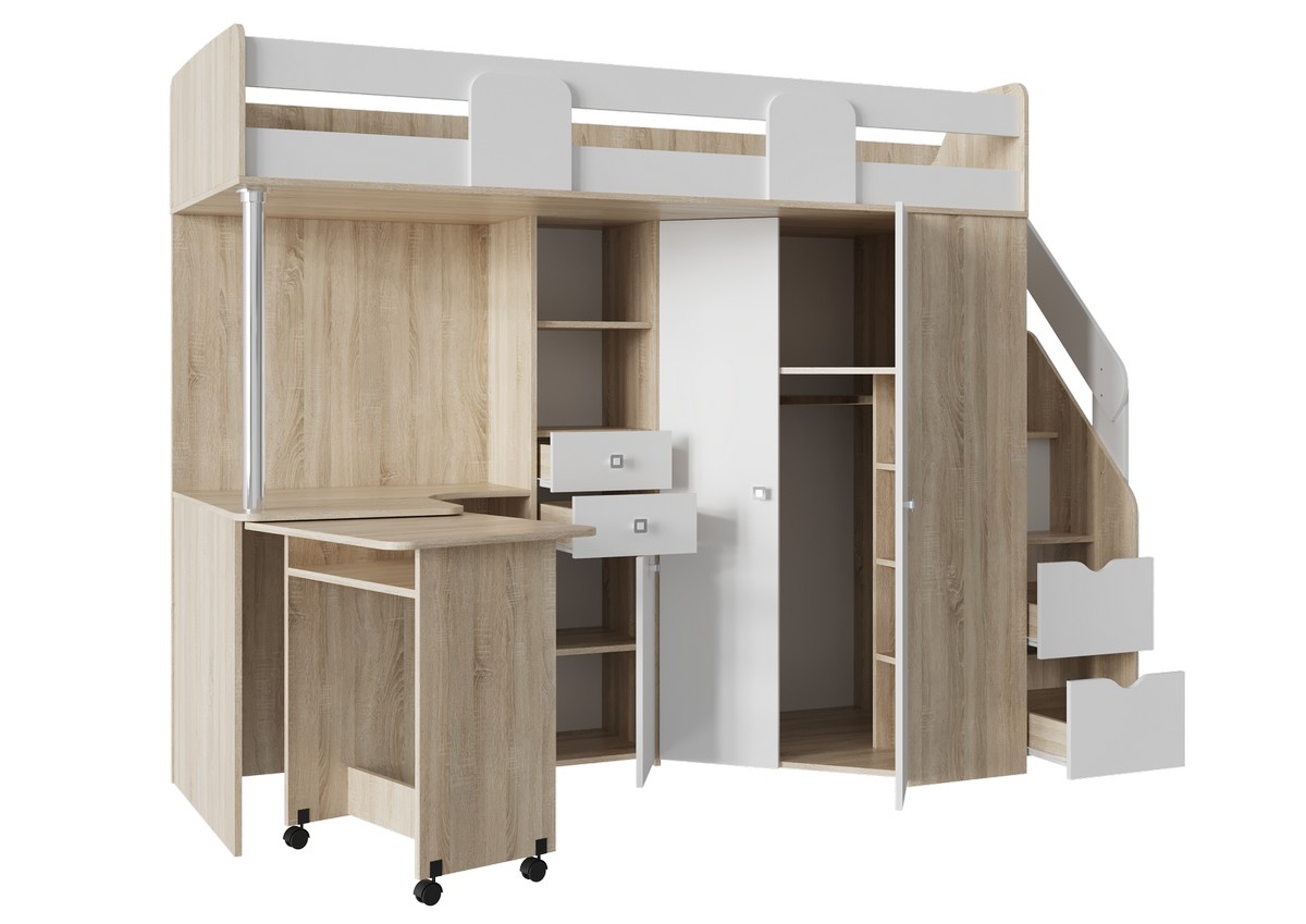 Главная Каталог Кровати Детские кровати МИЙА Кровать-чердак Дуб Сонома светлый /Белый