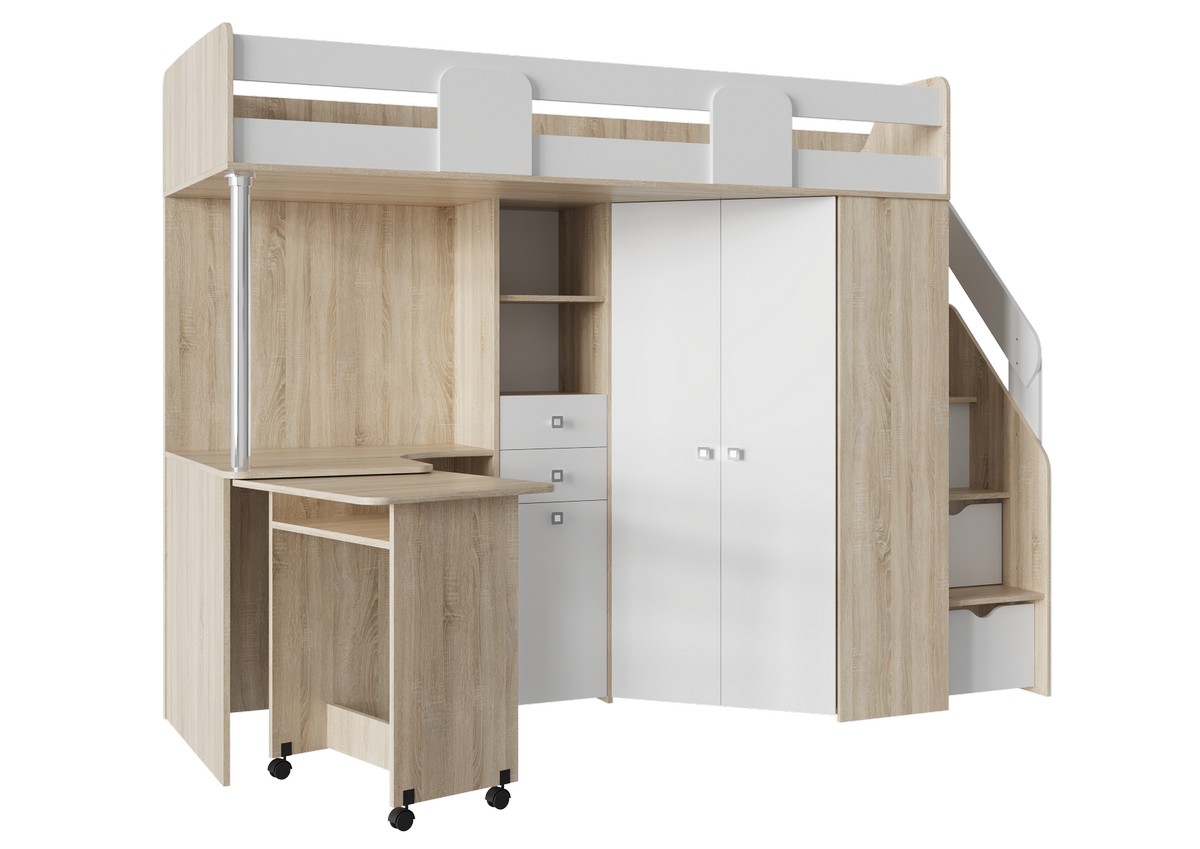 Главная Каталог Кровати Детские кровати МИЙА Кровать-чердак (исп.А) (сп.мес. 0,8 х 2,0 м.) Сп.место 2000 х 800 мм Дуб Сонома светлый /Белый