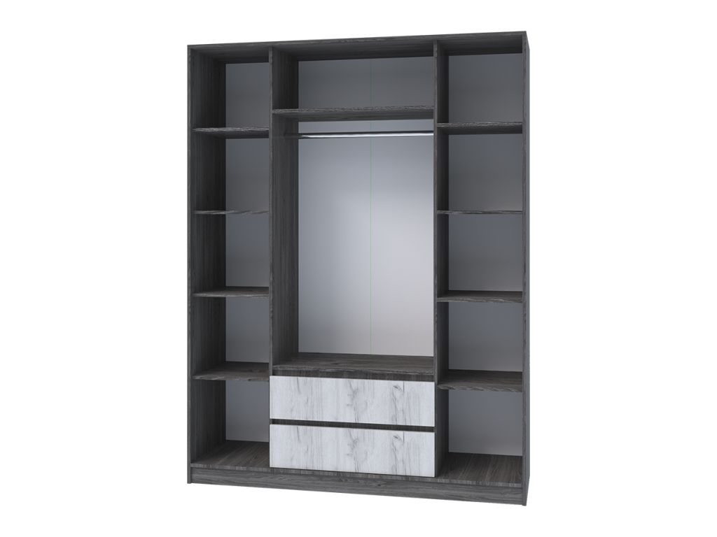 Наполнение: включает в себя штангу для одежды, полки и выдвижные ящики.