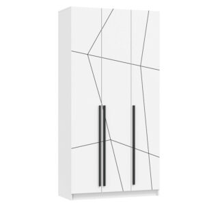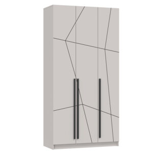 Трехстворчатый шкаф «Монако» относится к одноименной модульной серии. Модель не имеет вычурного декора и лишних деталей, выполнена в сдержанном и лаконичном стиле. Комплектация шкафа представляет собой несколько полок для хранения вещей в сложенном виде, а также отделение с хромированной штангой для одежды на вешалках. Для создания модели используется качественная ЛДСП цвета белого ясеня. Центральная створка является полностью зеркальной, две остальные дополнены изящными ручками.