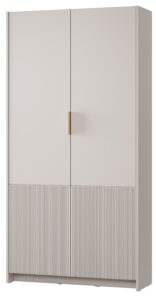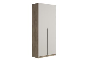 Шкаф распашной из серии «Наоми» – красивое и стильное решение для современного интерьера. Модель имеет две распашные створки, изготовленные из МДФ темного серого цвета, ручки являются частью фасадов. Шкаф состоит из вместительного отделения со штангой для одежды на вешалках и двух ниш для хранения трикотажа или обуви. Данная модель идет в комплекте с хромированной штангой.