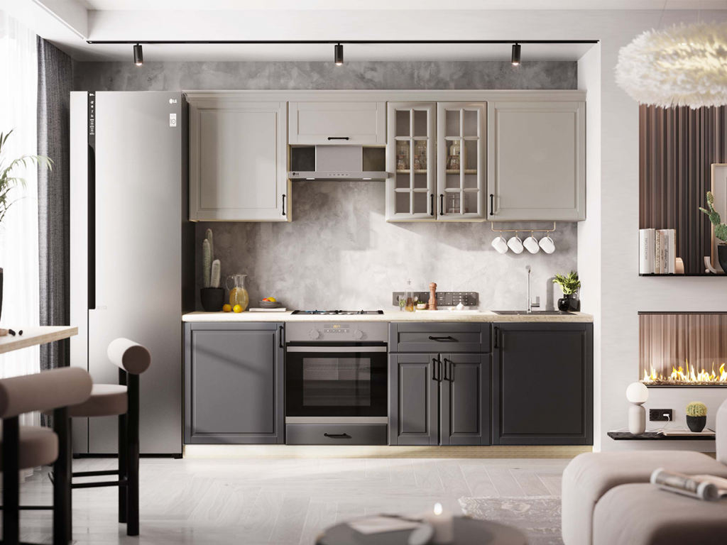 Кухня «Николь-1» 2,4 м (унив-й Р-600д) в цветовой гамме «Дуб сонома / Серый дым / Графит» — это прямой кухонный гарнитур от производителя «Росток-Мебель». Модель отличается современным дизайном и функциональностью, подходит для помещений с шириной 240 см.